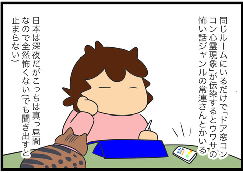 ただツレ氏の家から飛び出したときの「ねこちゃんが返事をしてくれた」一件以来私もそれまでの「おばけなんてないさ」だった考え方が少し変わった。